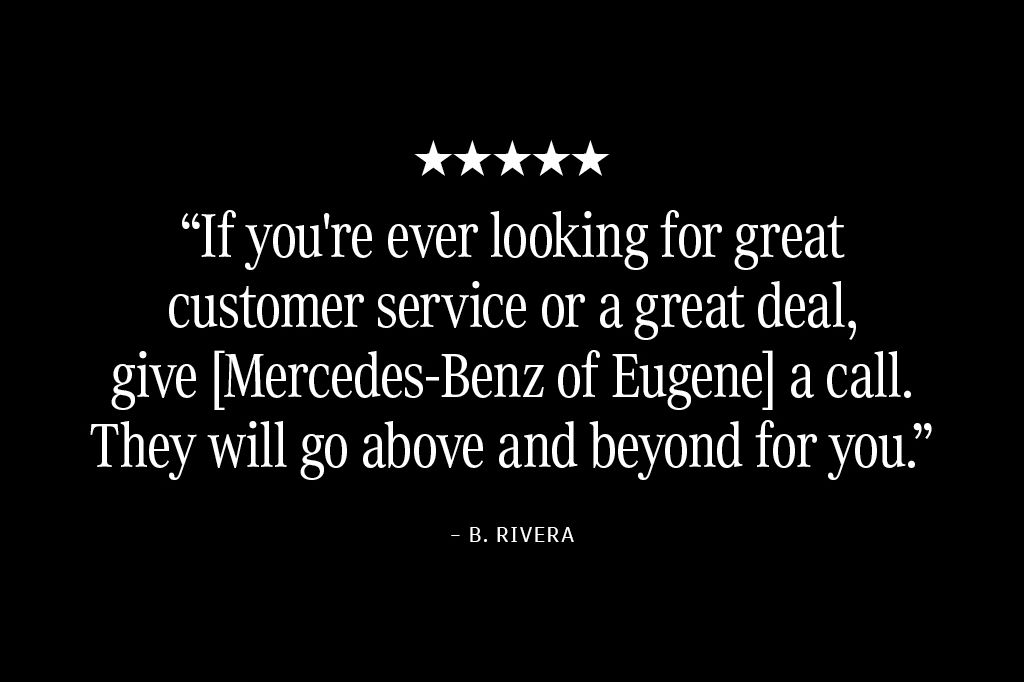 Whether it’s your first time visiting our dealership or you’re a loyal returning client, you can always count on us to provide an exceptional experience. At our dealership, we are dedicated to offering top-notch customer care and delivering the ultimate ownership experience. Our commitment to excellence extends far beyond the sale, as we aim to build lasting relationships. That’s why, when you choose Mercedes-Benz of Eugene, you become a valued member of our family. We proudly serve Eugene and the surrounding areas, including Springfield, Corvallis, Albany, Lebanon, Florence, and Cottage Grove. As representatives of the exceptional German engineering and design that define every Mercedes-Benz vehicle, we hold ourselves to the highest standards of quality. This commitment shines through in every aspect of our service, from our transparent and professional sales process to our seamless financing options.