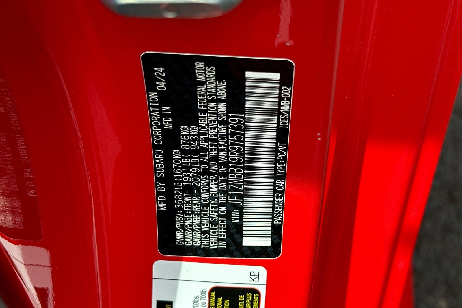 - 2.4L H-4 port/direct injection, DOHC, variable valve control, premium unleaded, engine with 228HP