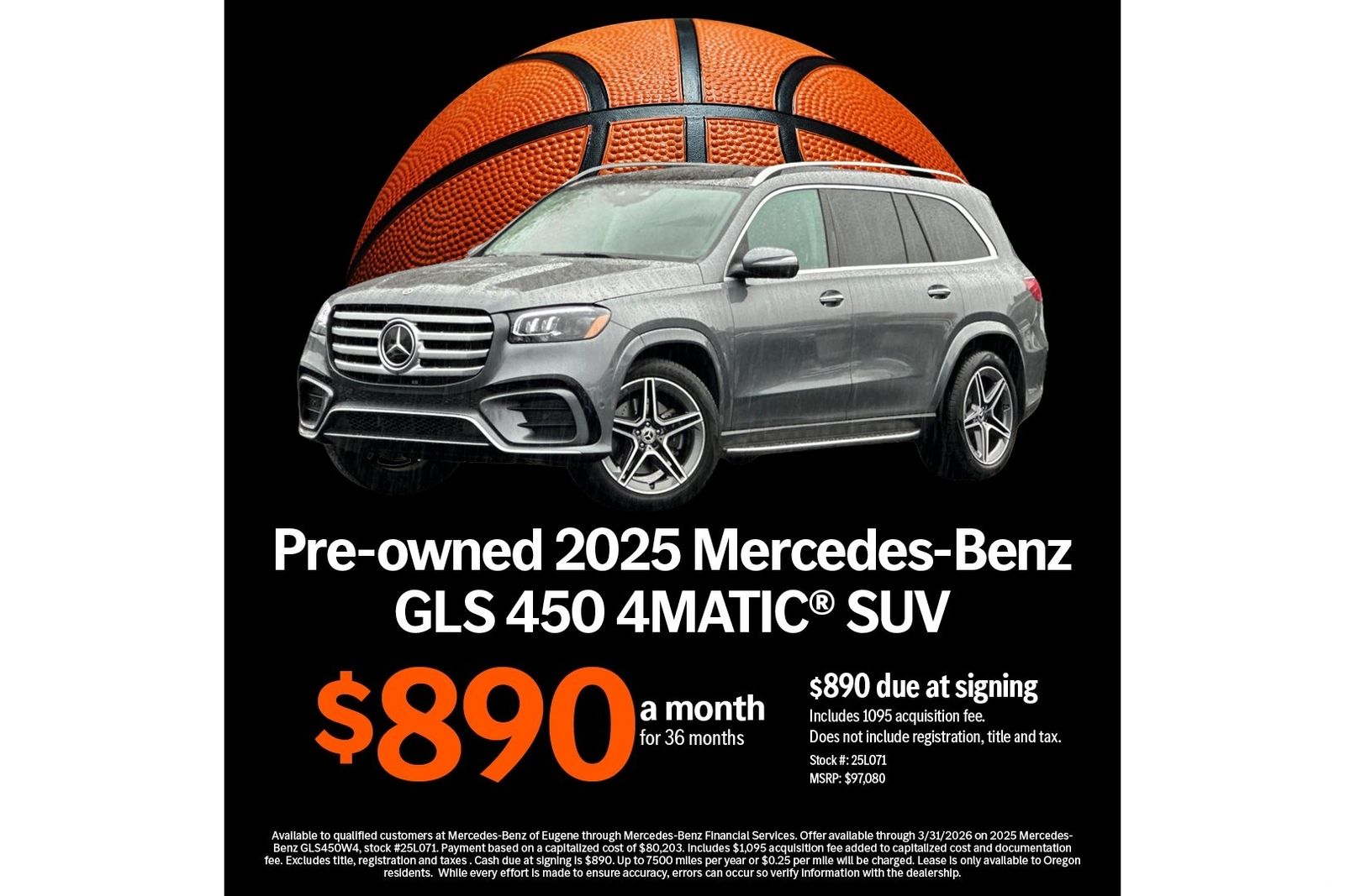 Base MSRP excludes transportation and handling charges, destination charges, taxes, title, registration, preparation and documentary fees, tags, labor and installation charges, insurance, and optional equipment, products, packages and accessories. Options, model availability and actual dealer price may vary. See dealer for details, costs and terms. AMG® and 4MATIC® are registered trademarks of Mercedes-Benz Group AG. Android Auto™ is a trademark of Google LLC. Apple CarPlay® is a registered trademark of Apple Inc. harman/kardon® and Logic 7 are registered marks of Harman International Industries, Incorporated Burmester® is a registered trademark of Burmester Audiosysteme GmbH, Berlin, Germany Bluetooth® is a registered mark of Bluetooth SIG, Inc.. Tax, Title and Tags not included in vehicle prices shown and must be paid by the purchaser. Some prices may include manufacturer-to-dealer offers that are not compatible with manufacturer special finance programs and/or lease offers. While great effort is made to ensure the accuracy of the information on this site, errors do occur so please verify information with a customer service rep. This is easily done by calling us at 541.687.8888 or by visiting us at the dealership.